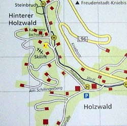 Fahren Sie weiter bis zur zweiten scharfen Kurve. Hier sehen Sie das Schild Holzwald. Nach ca. 500 m erreichen Sie unser Haus. (rechts oberhalb der Straße